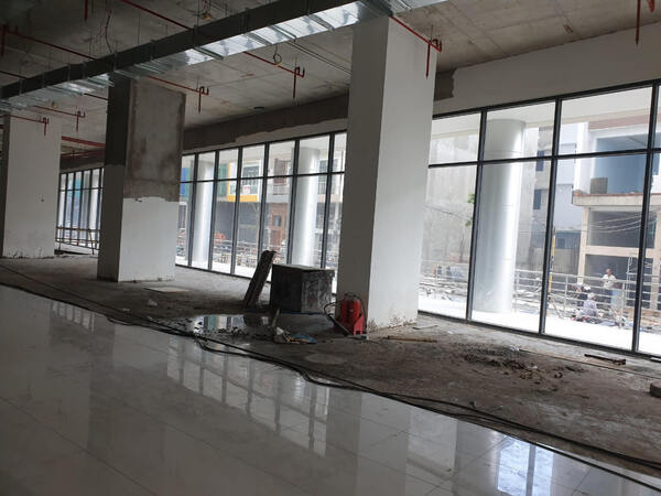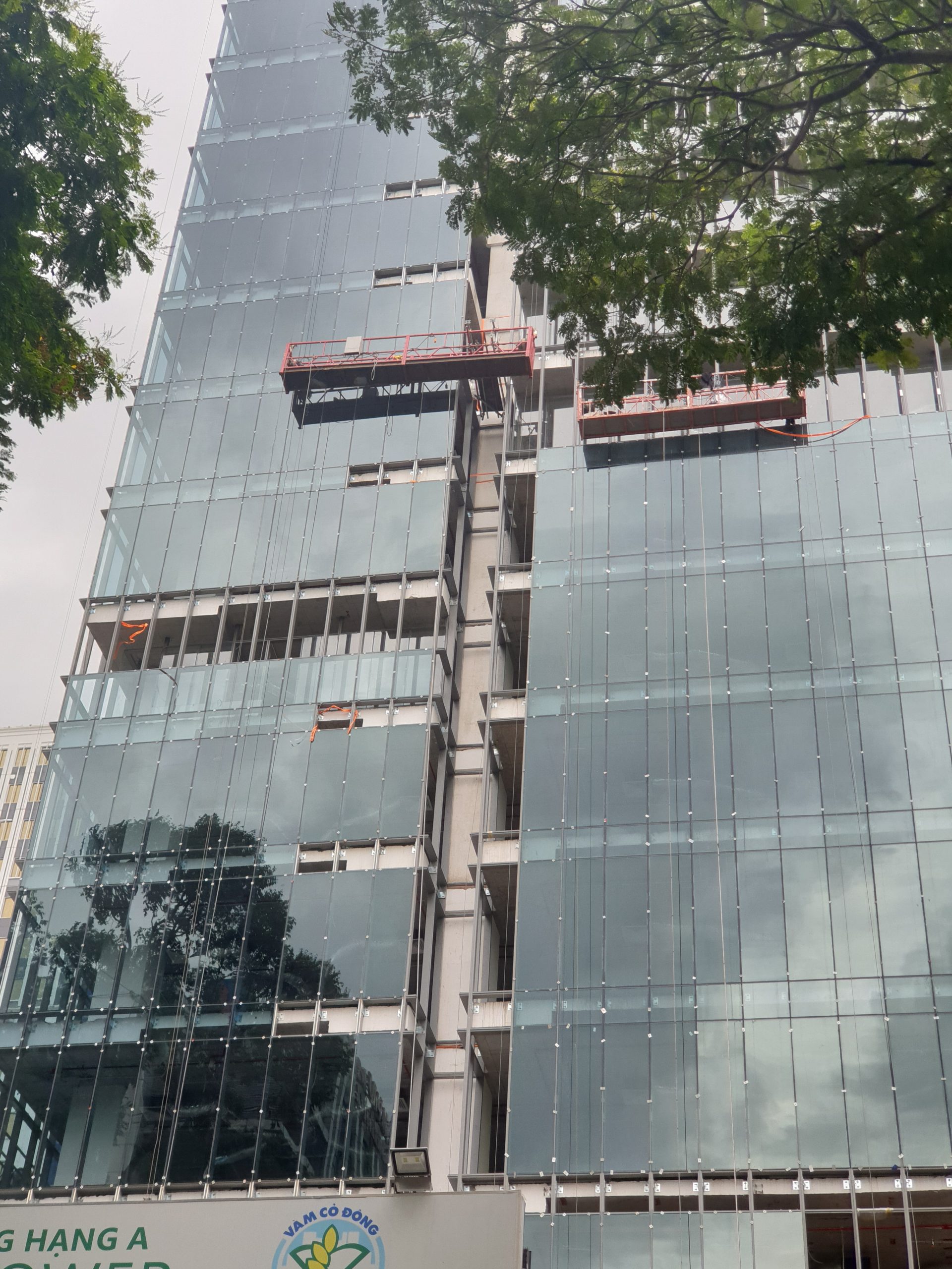 Thi công vách kính mặt dựng bước vào giai đoạn hoàn thành