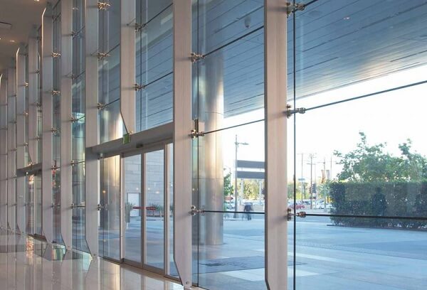 Cửa tòa nhà sử dụng mặt dựng kính khung nhôm đen