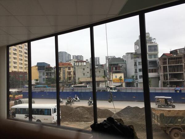 Mặt dựng nhôm hệ 55 giấu độ đang được thi công