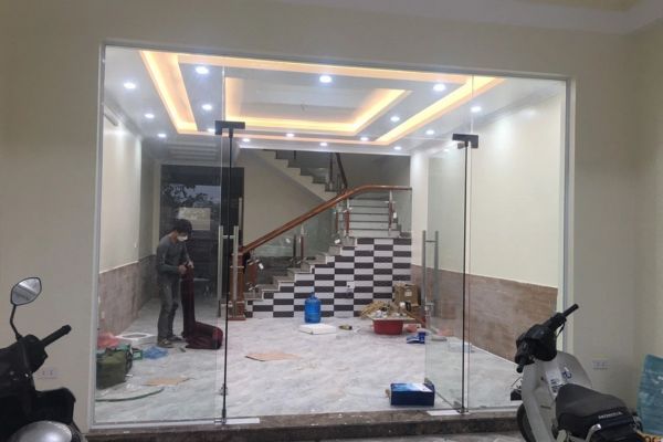 Cửa sử dụng phụ kiện Kinlong chính hãng đồng bộ – kính trắng 8mm cường lực.