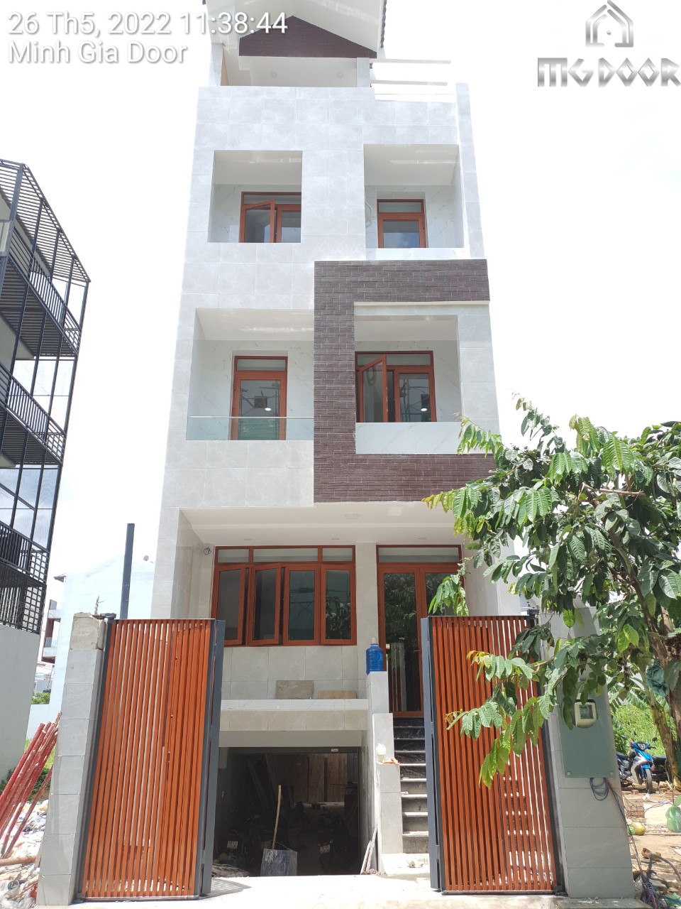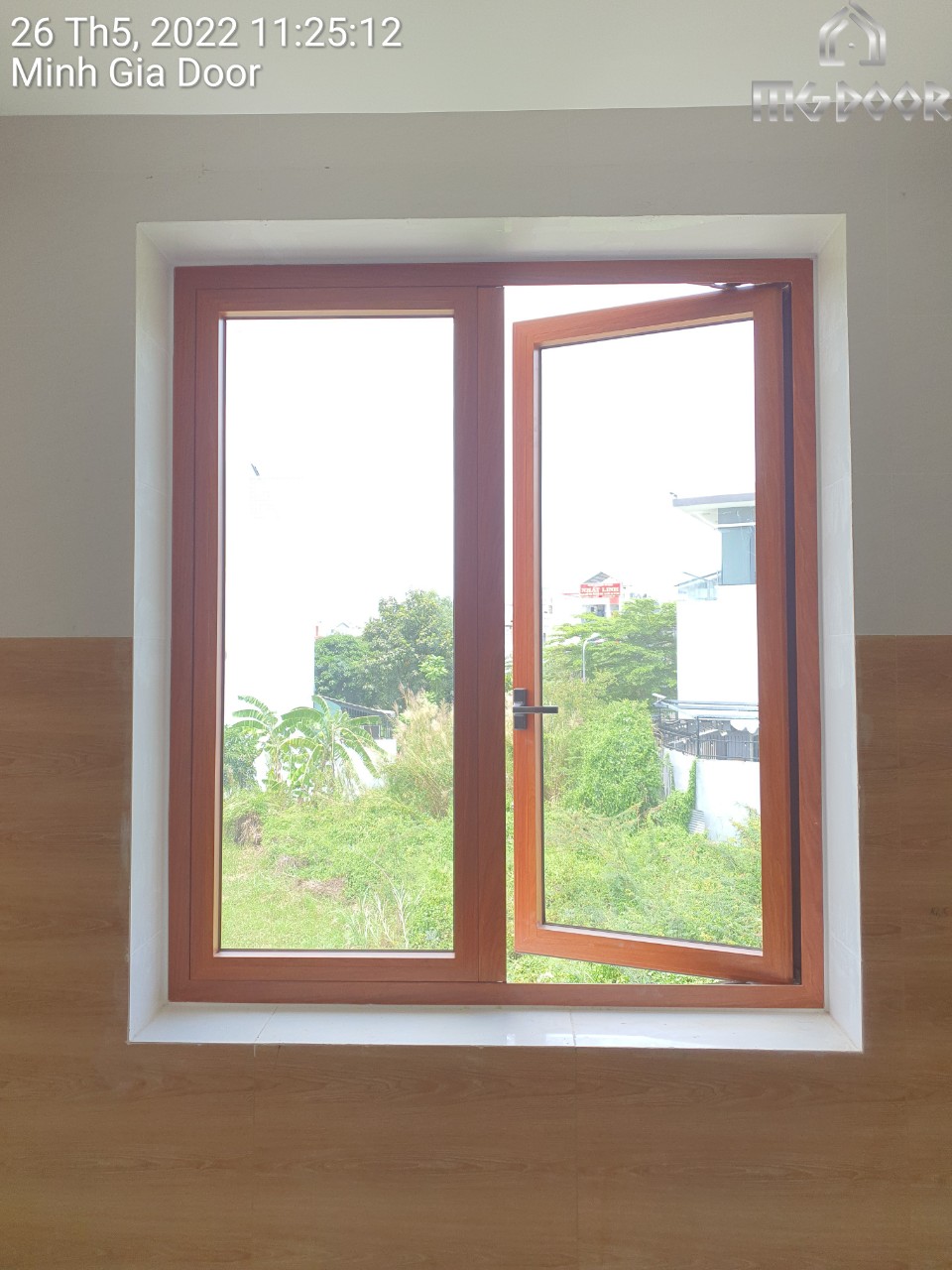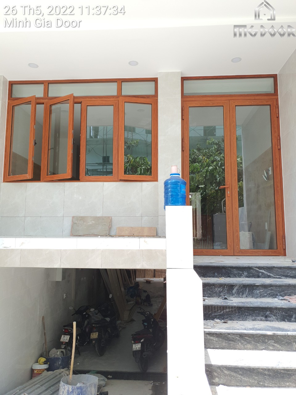 | Hạng mục thi công | Lắp đặt cửa nhôm Xingfa màu giả gỗ kính cường lực 8mm |