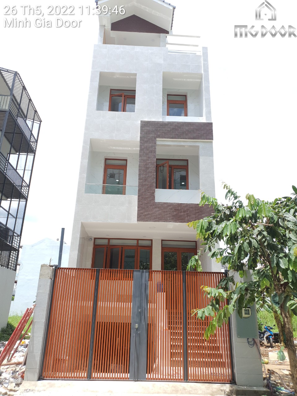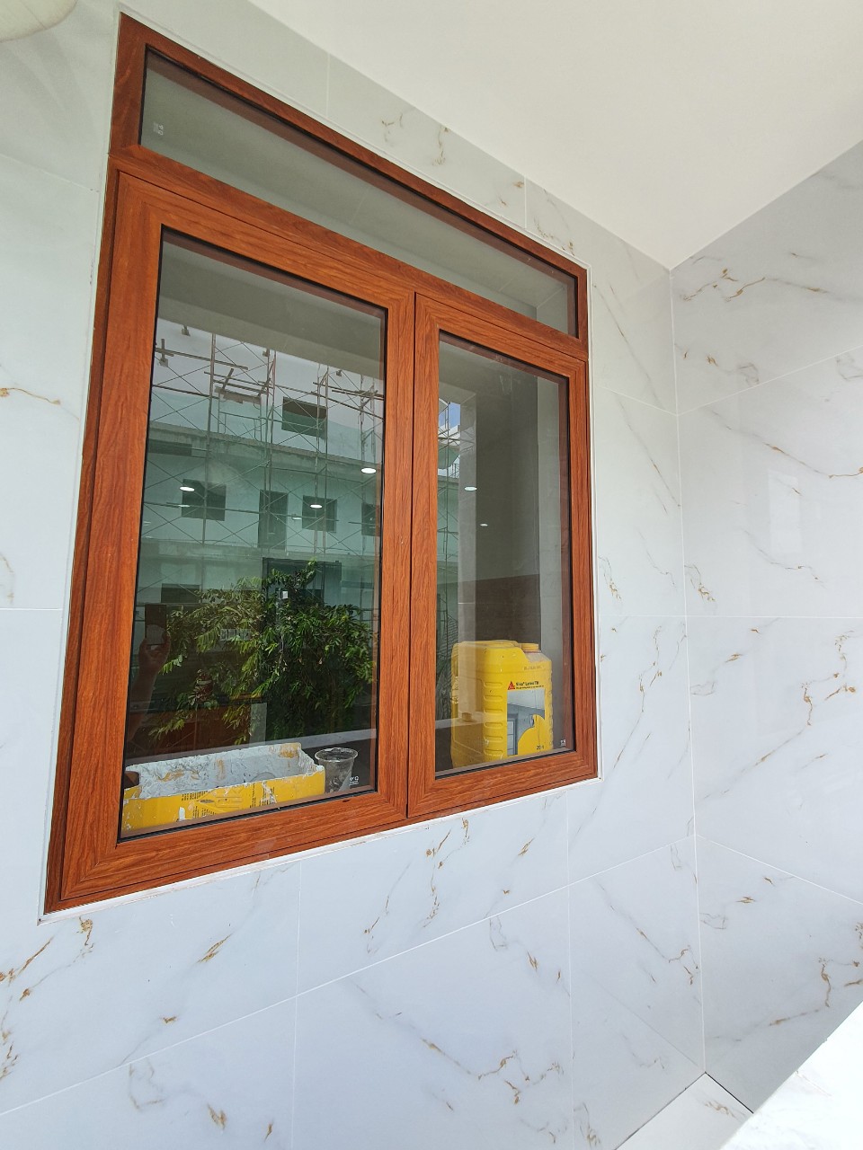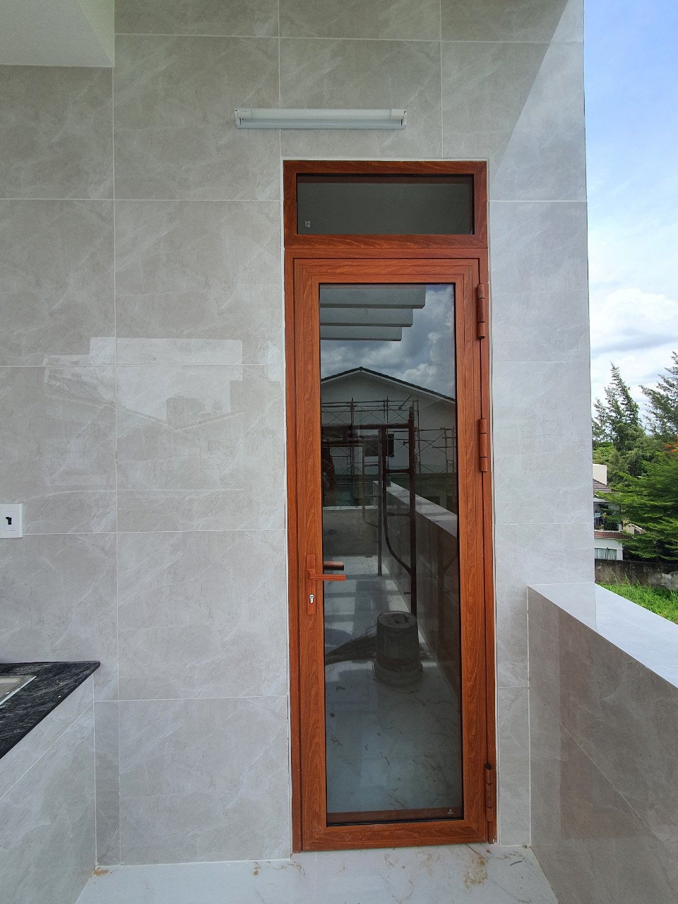 | Hạng mục thi công | Lắp đặt cửa nhôm Xingfa màu giả gỗ kính cường lực 8mm |