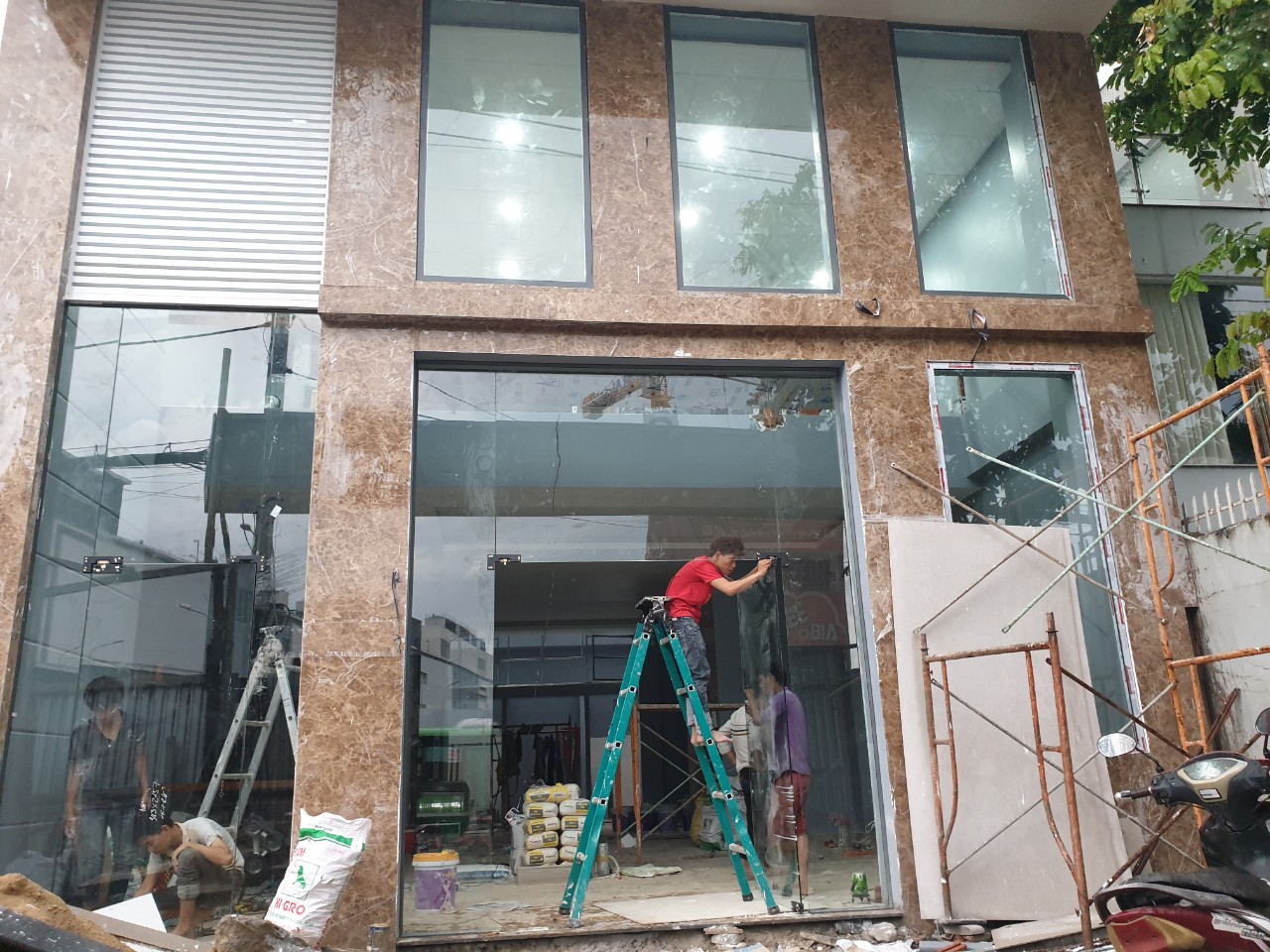 | Hạng mục thi công | Sản xuất lắp đặt cửa nhôm Xingfa kính cường lực 10mm, lắp đặt mặt dựng kính 10mm khung nhôm Xingfa Quảng Đông, lắp đặt lan can kính, lắp đặt cửa kính cường lực, khung sắt mái che kính |